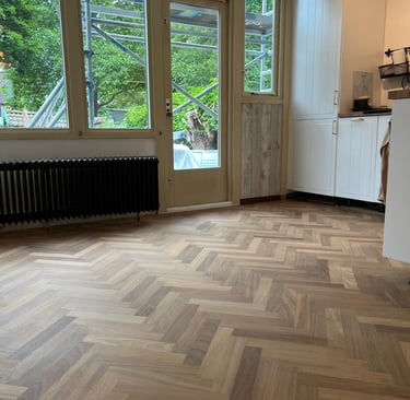Wij werken uitsluitend met hoogwaardige 2K-lakken, die wij in drie lagen aanbrengen. Op deze manier garanderen wij een duurzame afwerking van topkwaliteit, zodat uw vloer er jarenlang als nieuw blijft uitzien.